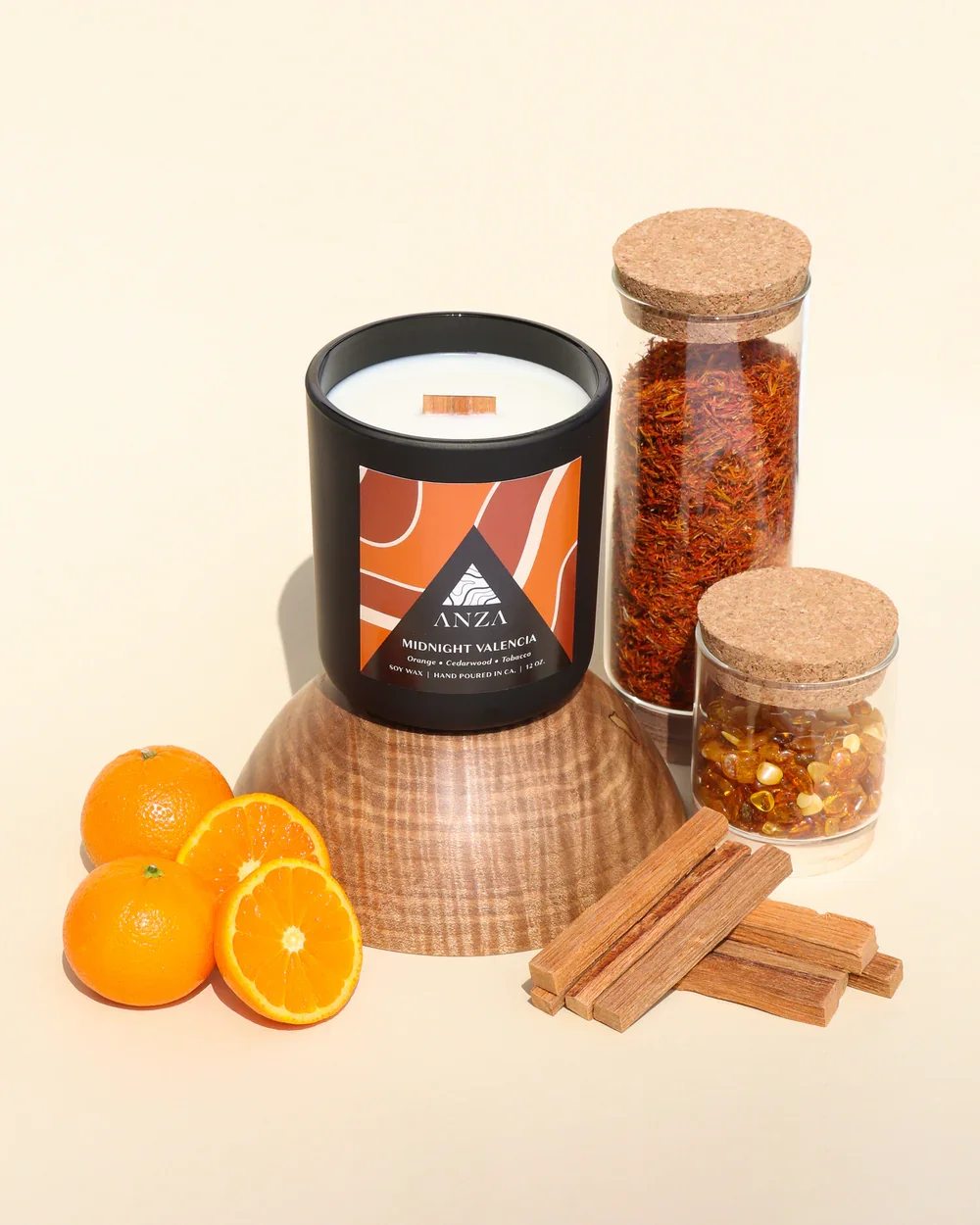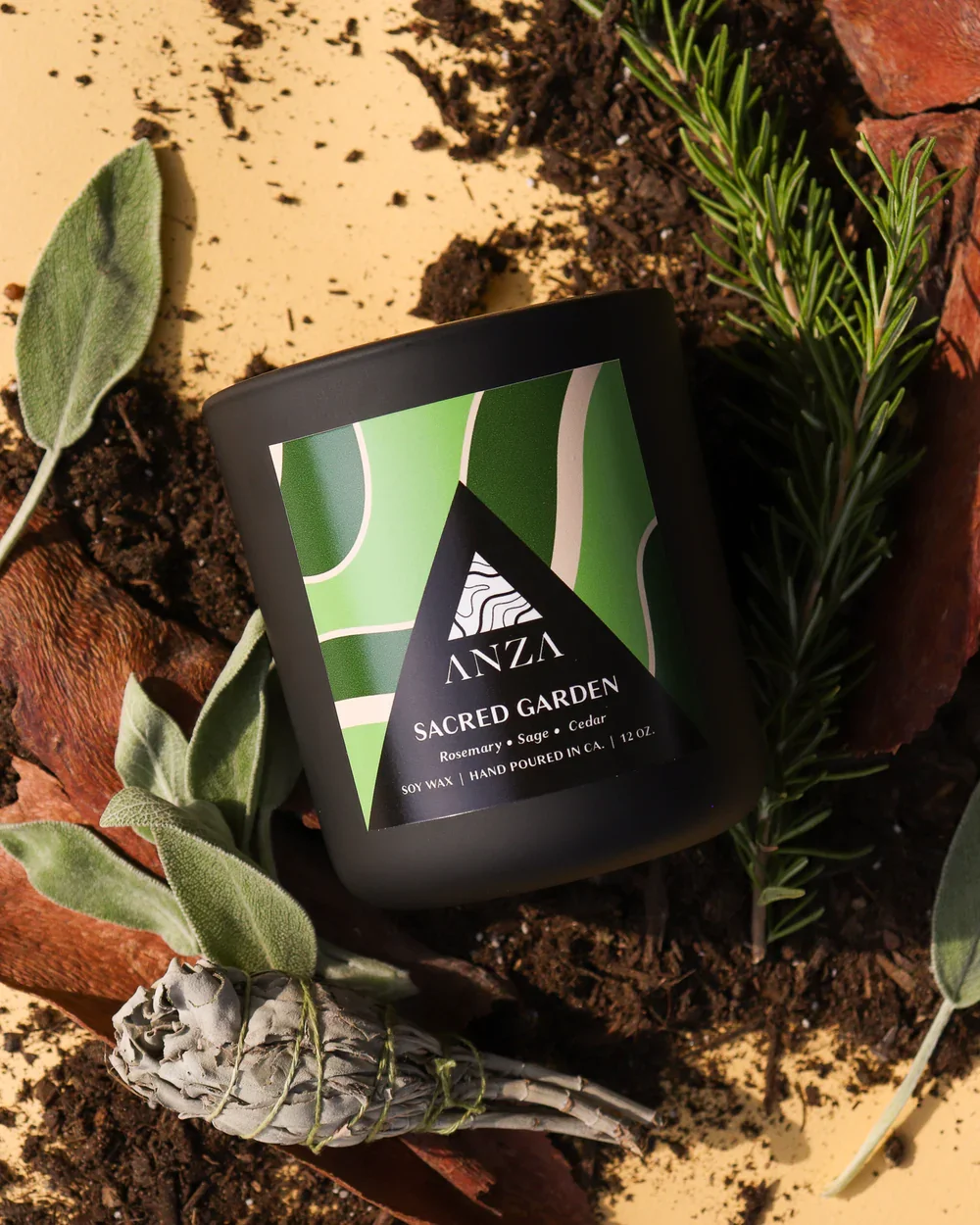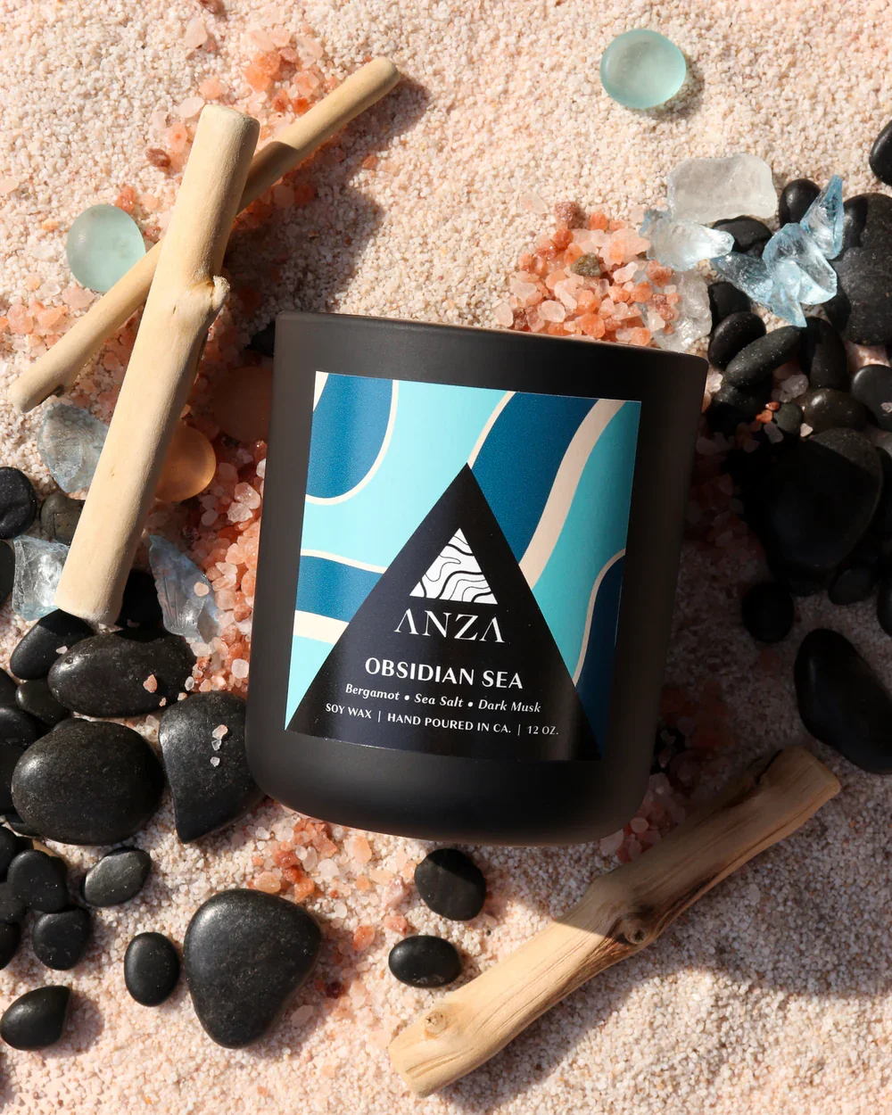 Anza is a hand-made and timeless home decor studio curated for a natural and modern aesthetic. The design of this logo mark is earth inspired, taking cues from textured wood grain and striations found in gemstones, all while being grounded in a solid triangular form.