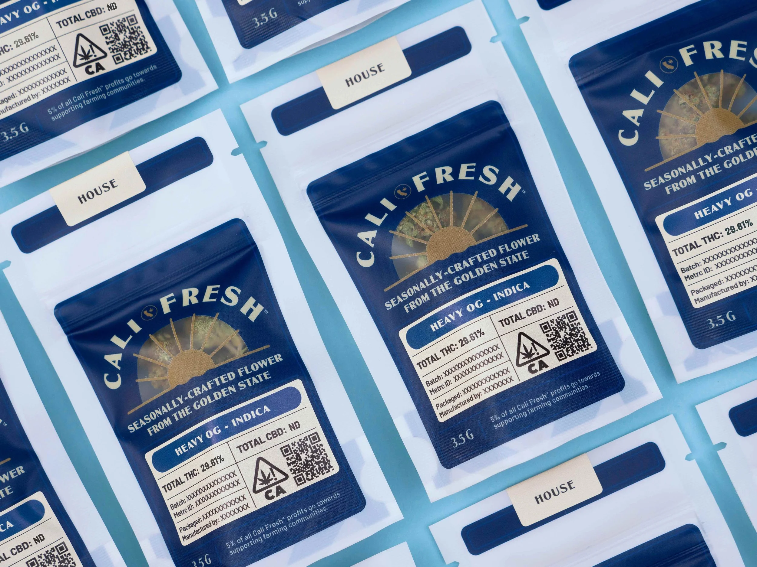Cali Fresh™ is the first line of cannabis flower from the farms of People’s California, located in Monterey Bay. The designs of the packaging was created to have a modern-retro look connecting the product with a contemporary farmers market aesthetic.